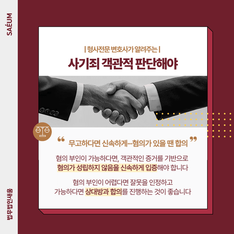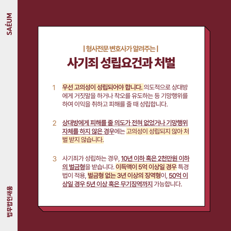 만일 본인의 의도한 바가 아님에도 불구하고 사기죄 고소를 당하게 되는 경우 다소 억울하게 처벌을 받게 될 수도 있습니다.