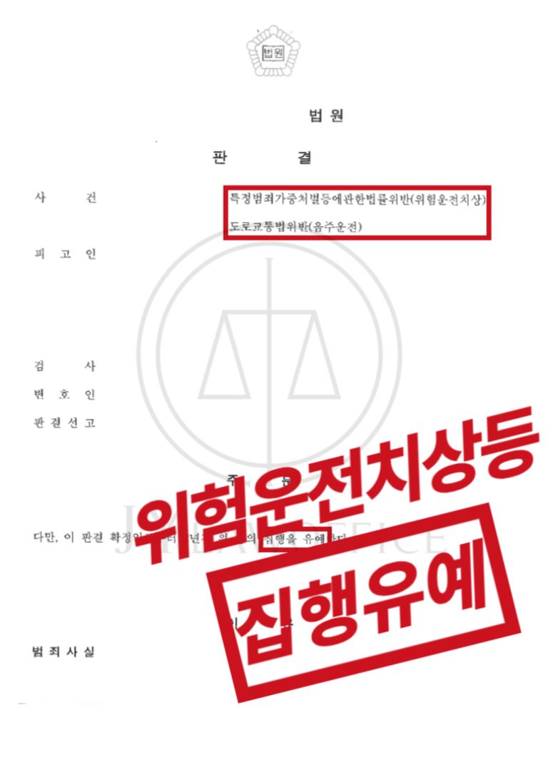 본 사건의 의뢰인은 음주운전으로 피해자의 승용차를 들이받음으로써 사고를 발생시켰습니다. 이에 '위험운전치상', '음주운전' 혐의가 적용된 의뢰인은 본 JY법률사무소를 찾아 법리적 조언을 요청하셨습니다.