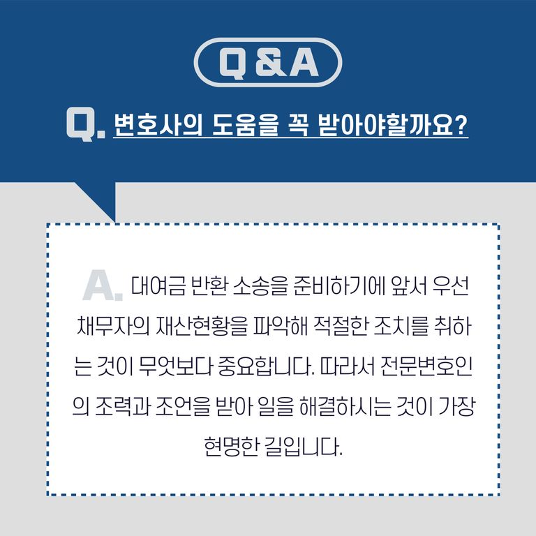 적지 않은 금액을 빌려가고도 차일피일 미루며 돈을 갚지 않는 채무자 때문에 답답해하시는 분들이 정말 많으십니다.