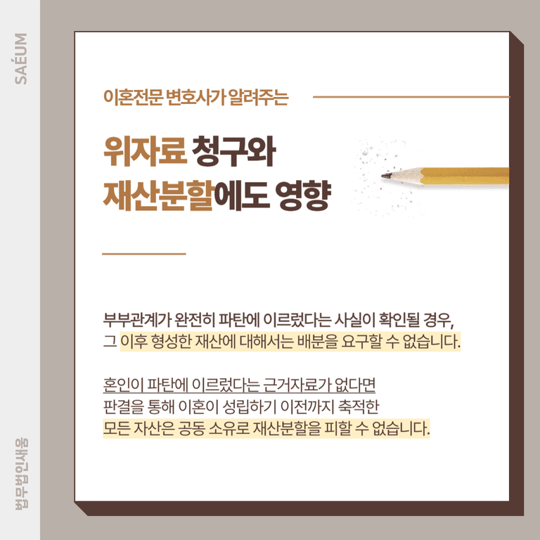 이처럼 부정행위로 인해 혼인을 정리하거나 상간소송을 제기할 때 나도 바람을 피우게 되었다면, 정확한 시점 확인을 거치는 것이 중요합니다. 이미 파탄이 난 관계임에도 억울하게 위자료를 받지 못하거나 재산분할에서 불리한 결정이 내려지는 일이 없도록 사전에 이혼전문변호사와 상담하시기 바랍니다.