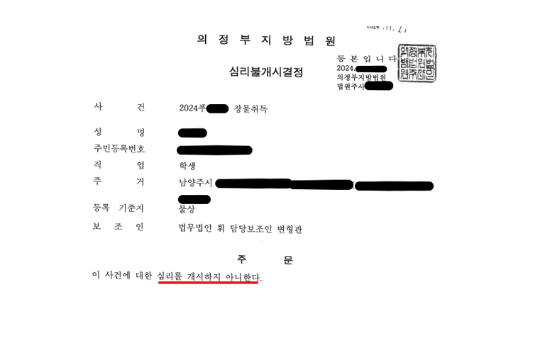 ![[심리불개시 결정 - 장물취득] 소년보호사건 심리불개시 결정](/_next/image?url=https%3A%2F%2Fd2ai3ajp99ywjy.cloudfront.net%2Fassets%2Fimages%2Fpost%2Fcase_title.jpg&w=3840&q=75)