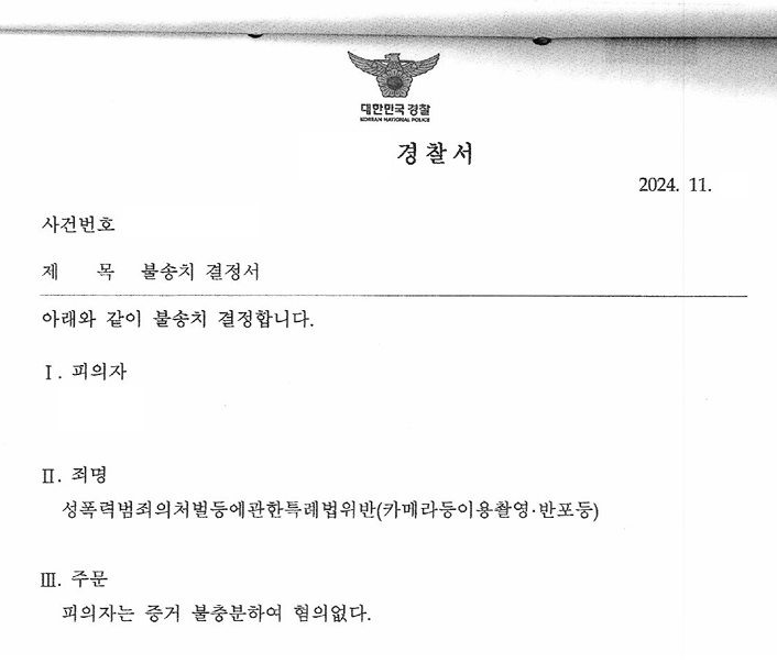 5. A씨는 카메라등이용촬영죄 사건에서 저희의 조력을 받음으로써 경찰단계에서 불송치 처분을 받으셨습니다.