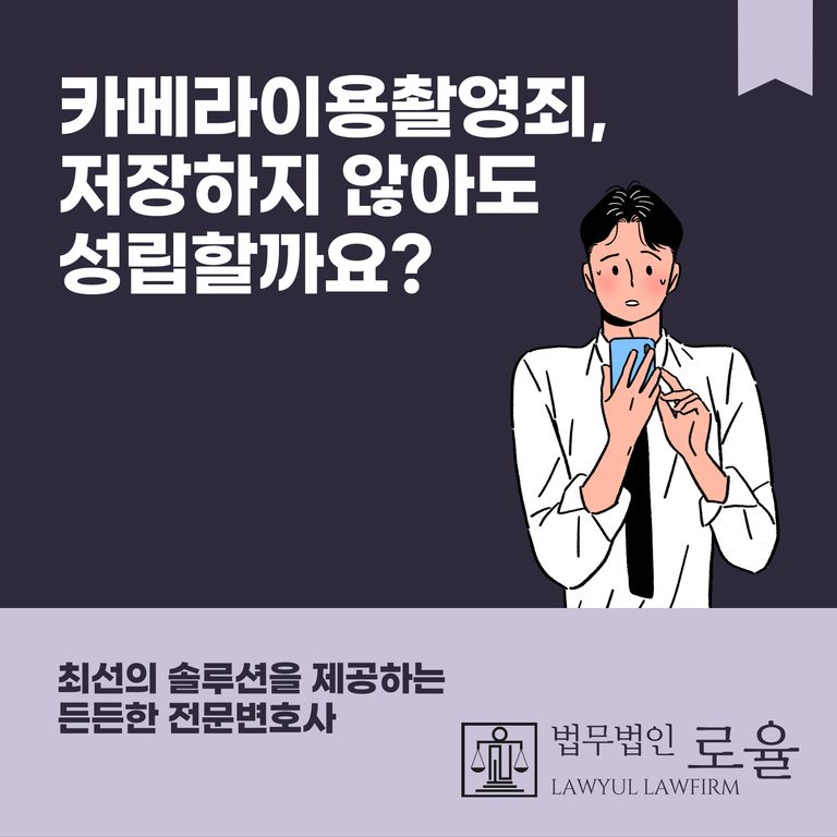 ‘촬영’에 대해서는 저장 여부보다는 촬영을 시도했는지를 범죄의 성립요건으로 보기 때문에 촬영을 하였지만 저장을 하지 않았다는 이유로 혐의에서 벗어날 수는 없습니다.