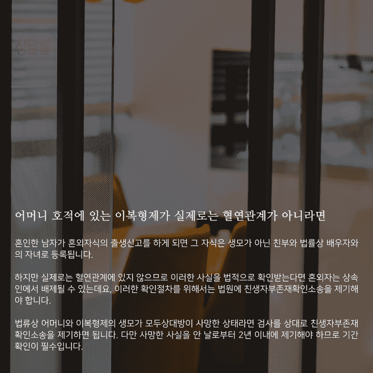 어머니 호적에 있는 이복형제가 실제로는 혈연관계가 아니라면