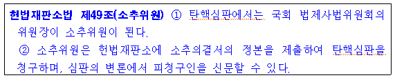 법제사법위원회의 위원장이 탄핵안과 관련해 소추위원이 됩니다.
