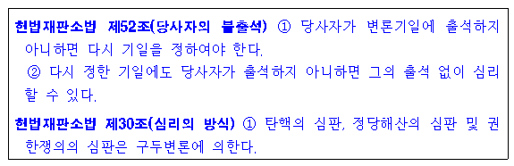 헌법재판소의 기일은 구두변론으로 진행됩니다.
