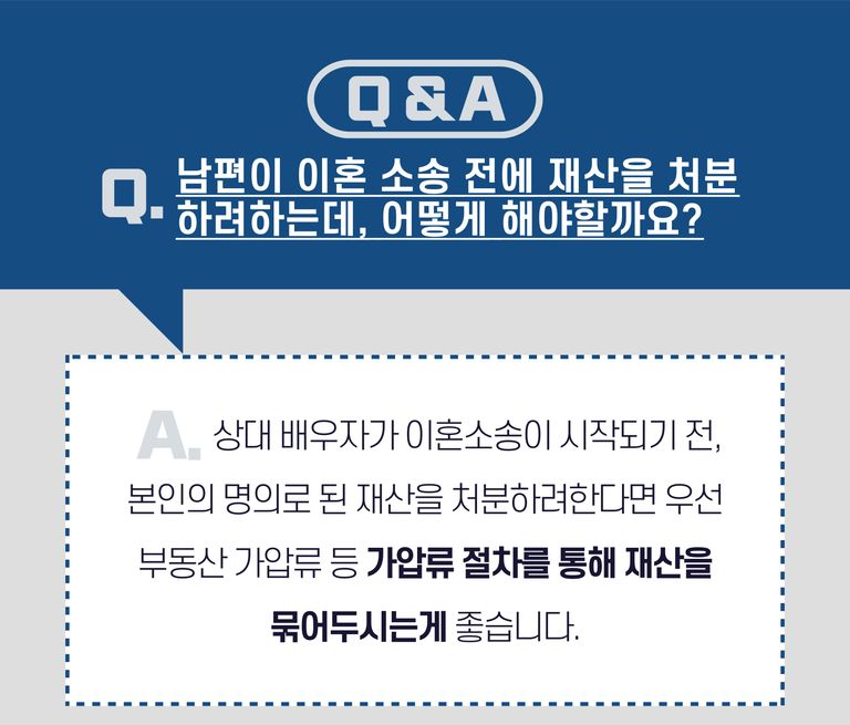 이때 배우자가 아직 재산을 처분하기 전이라면, 해당 재산에 대한 가압류신청을 하여 재산을 미리 동결시켜두는 것이 필요합니다.