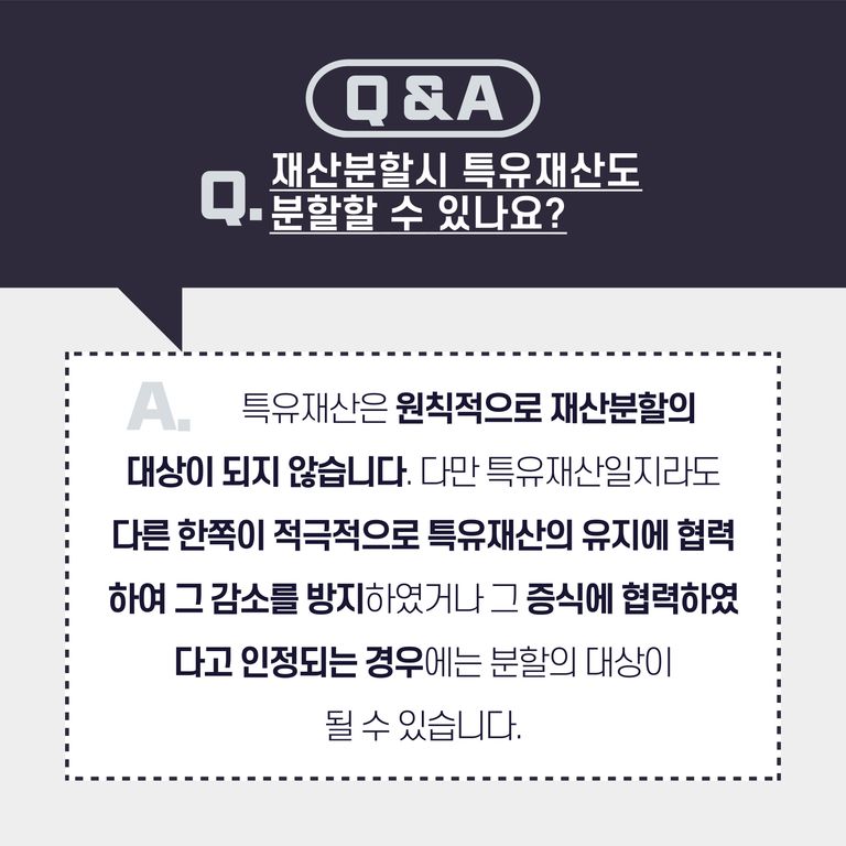 다만, 특별한 경우 특유재산도 재산분할 대상이 될 수 있습니다.