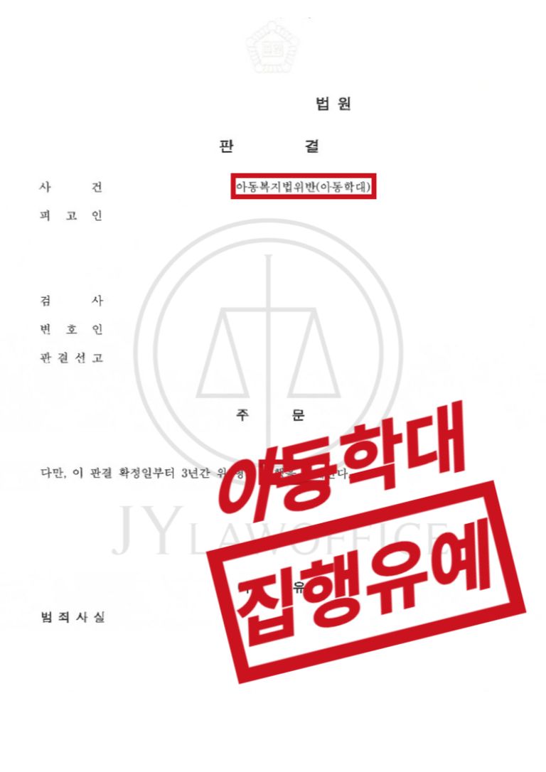 이와 같은 변호인의 주장에 의뢰인은 아동복지법위반(아동학대)혐의에 대해 집행유예 판결을 받고 사건을 종결시킬 수 있었습니다.