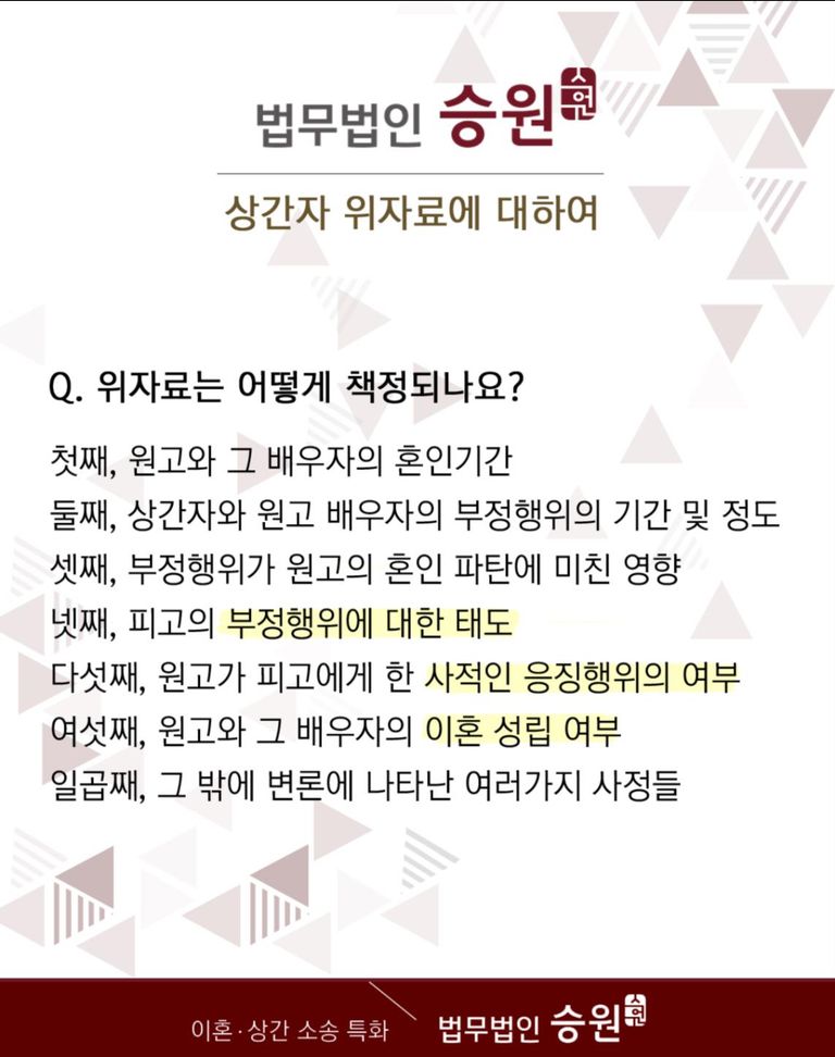 원고가 받은 피해 정도, 피고의 태도, 부정행위 지속 여부, 부정행위 수위 및 기간 등에 따라 위자료는 달라질 수 있는데요.