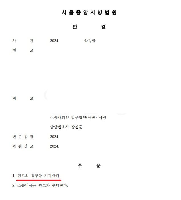 이에 따라 원고 A씨의 청구는 기각되었습니다.