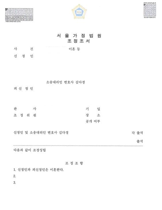 아래 조정조서 공유드립니다.