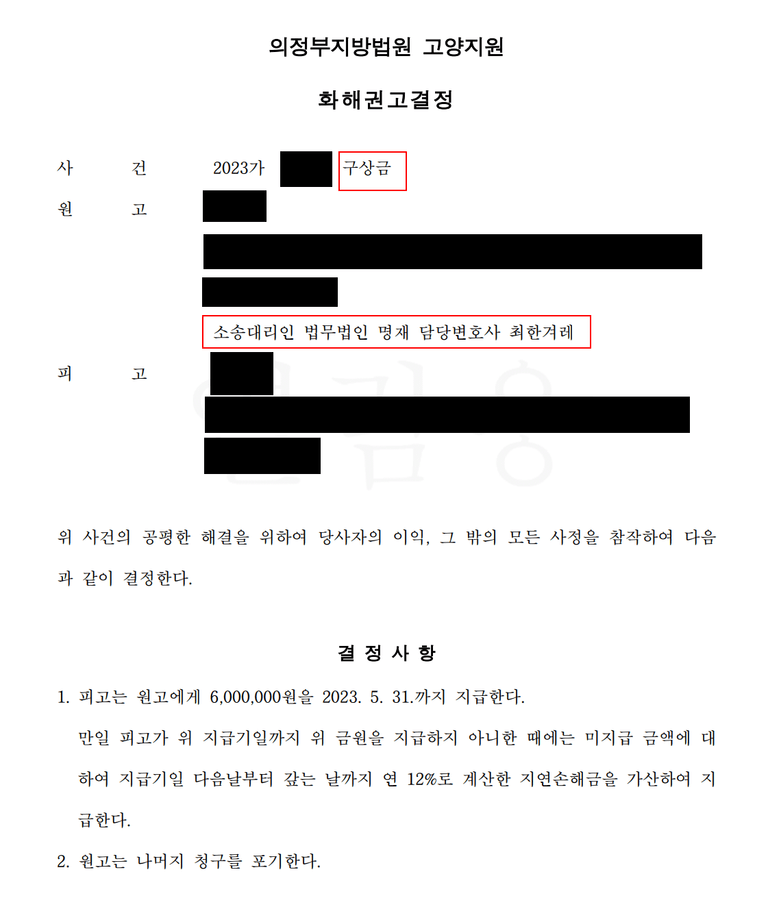 <구상금소송 화해권고결정>