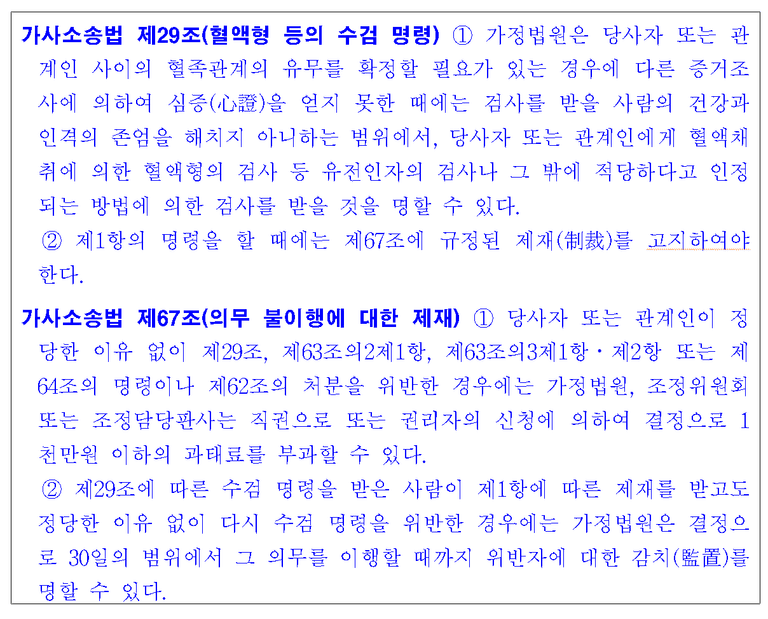 인지신고가 잘못된 것인지를 확인하기 위하여 법원은 유전자검사를 받으라는 수검명령을 내릴 수 있습니다.