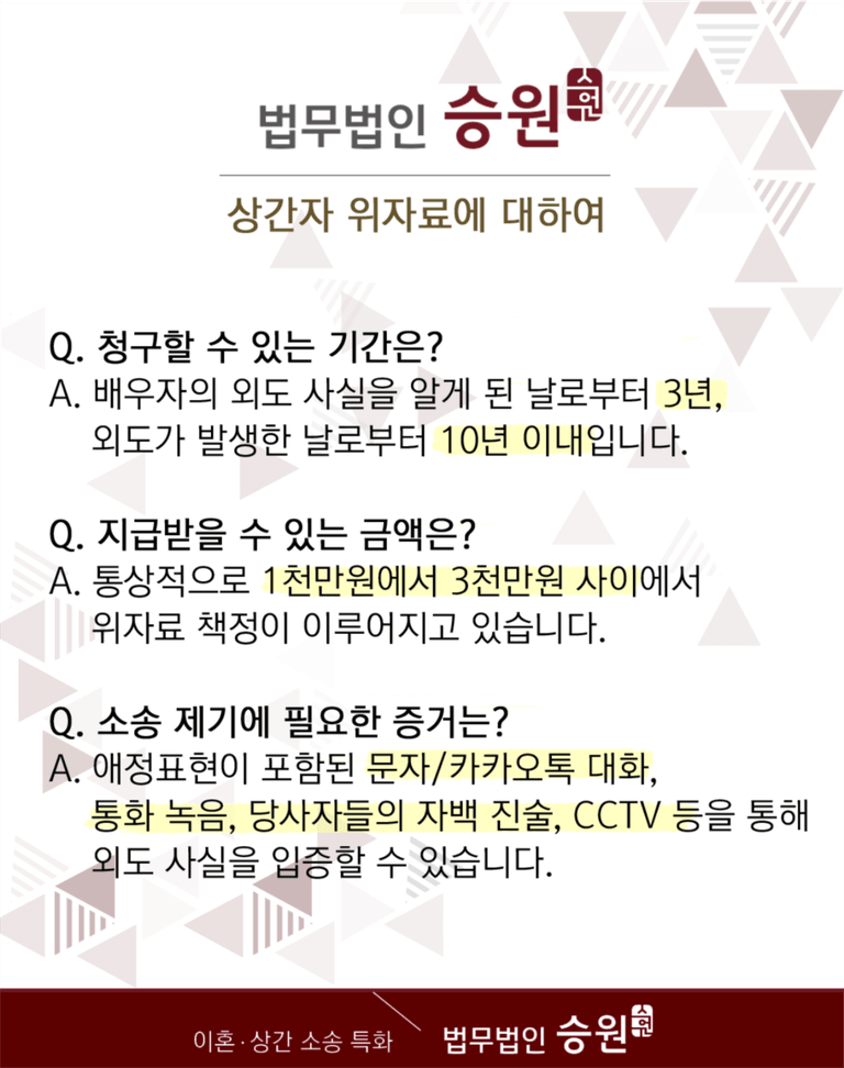 민법에 따른 상간자처벌이라고 할 수 있는 위자료 청구 소송은 그 근거인 위자료 청구권이 소멸하기 전까지만 가능합니다.