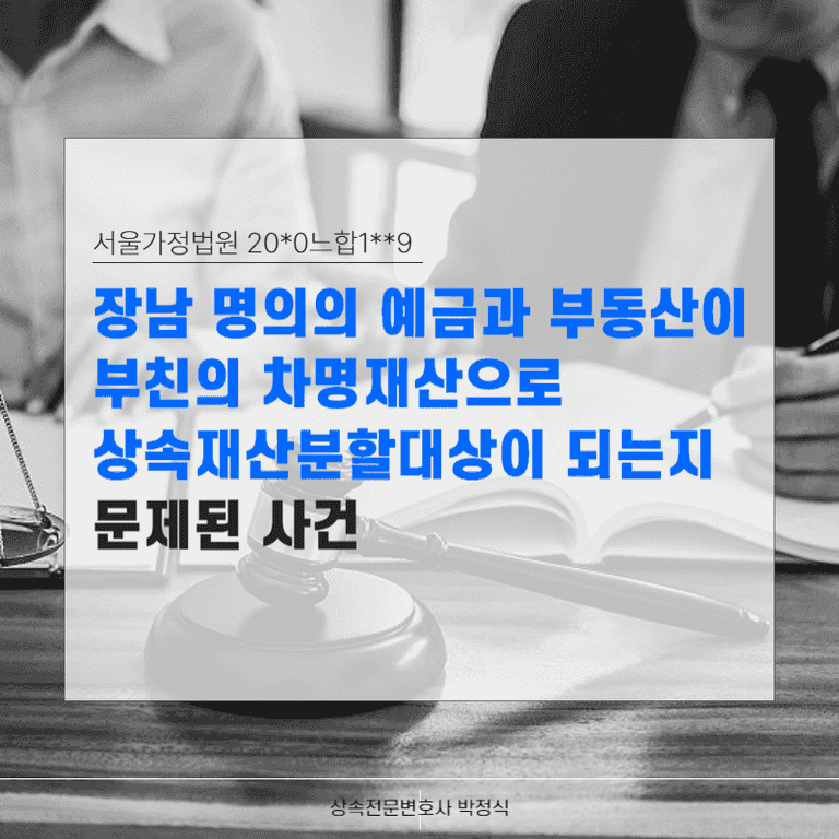 ① 장남 명의로 되어있는 예금, 부동산이 피상속인의 차명재산으로 상속재산분할대상인지 여부가 문제되었습니다.