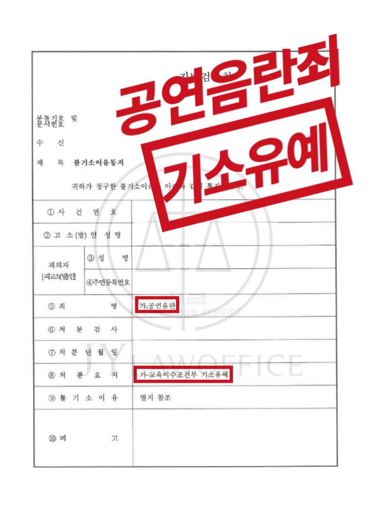 이와 같은 변호인의 조력에 따라, 의뢰인은 성폭력재범방지 교육프로그램 이수를 조건으로 '기소유예' 처분을 받고 사건을 마무리 할 수 있었습니다.