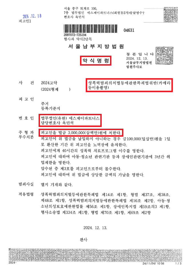 이에 A씨는 반드시 벌금형 이하로 막기 위해 자신을 도와줄 변호사를 수소문하기 시작하였고, 결국 불법촬영, 몰래카메라 등으로 불리는 성폭법위반(카메라등이용촬영) 사건을 다수 수행하며 성공적으로 해결하고 있는 저를 찾아와 도움을 요청하였습니다.