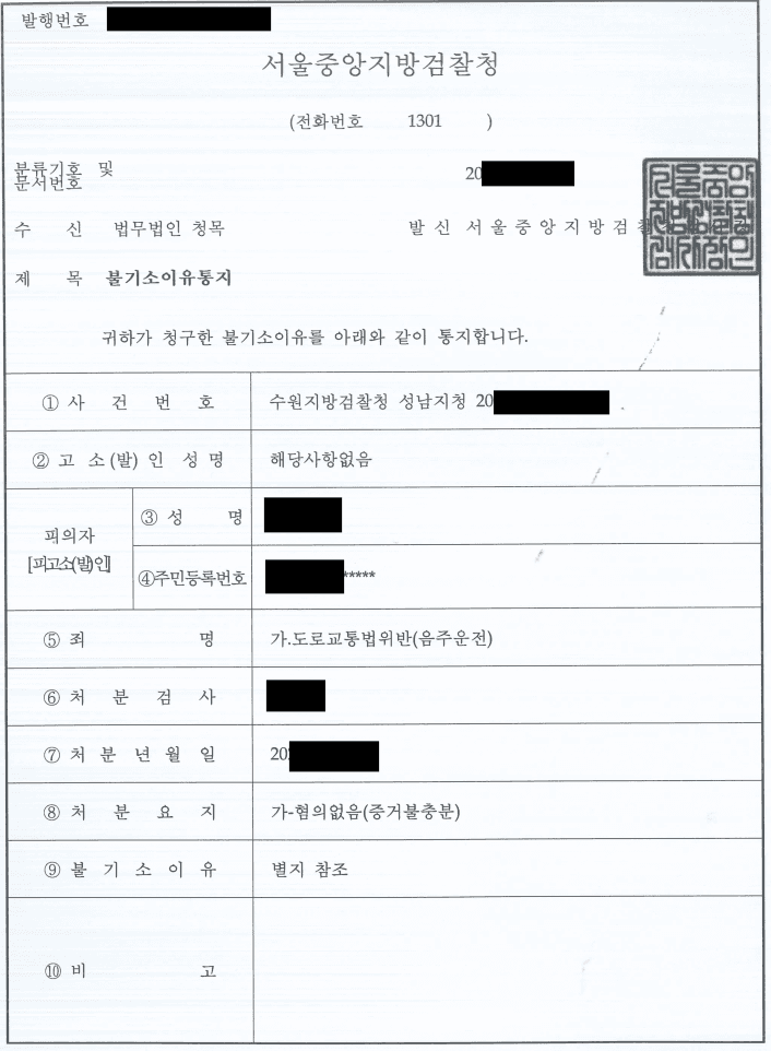 이하에서는 4회의 음주운전 전과가 있는 상황인 데에다, 음주운전으로 집행유예 기간 중에 또다시 음주운전으로 적발된 상황에서, 위드마크 공식을 적극 주장하여 혐의없음 처분을 받은 의뢰인의 사례를 소개해 드리고자 합니다.