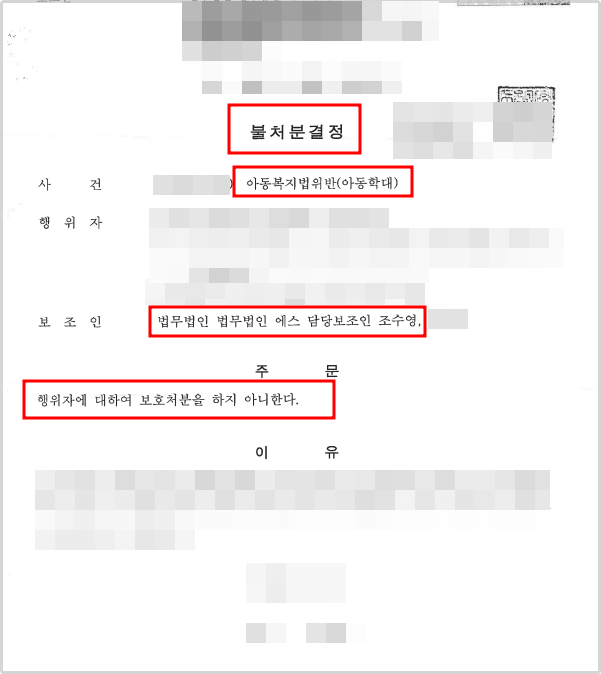 최근 아동보호사건으로 기소된 건에 대해서 불처분 결정을 받은 사례에 대해서 소개하겠습니다.