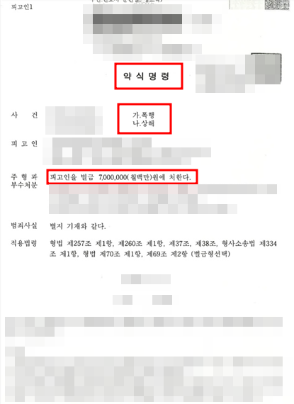 3. 남편에게 벌금 700만원의 약식명령이 발부됨