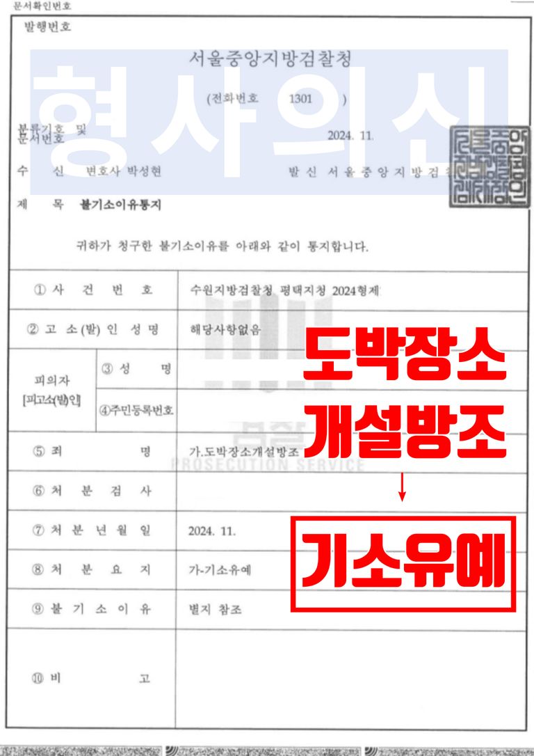 수원지방검찰청 평택지청 검사는 법률사무소 유(唯)의 형사전문변호사가 제출한 변호인의견서 및 양형자료 등을 받아들여 의뢰인이 초범으로 범행을 인정하며 반성하고 있는 점, 홀덤펍 실근무 기간이 짧은 점, 재범하지 않을 것을 굳게 다짐하는 점 등을 참작하여 불기소(기소유예) 처분을 하였습니다.