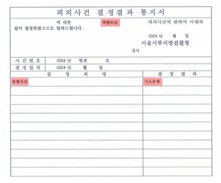 그 결과 사건은 기소유예로 마무리되었습니다.