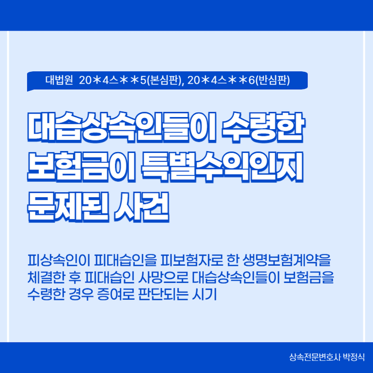 피상속인이 피대습인을 피보험자로 한 생명보험계약을 체결한 후 피대습인 사망으로 대습상속인들이 보험금을 수령한 경우 증여로 판단되는 시기 등이 문제되었습니다.