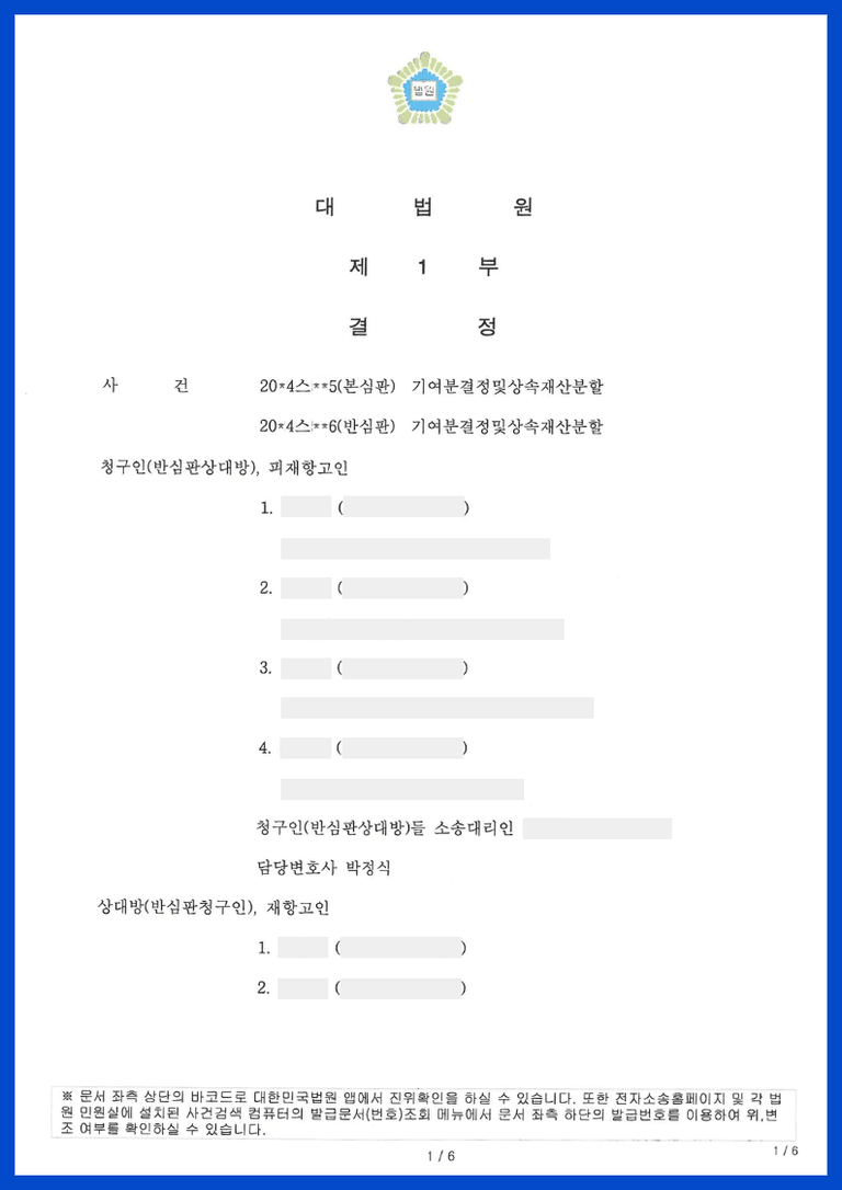 상대방 1은 피상속인 자녀 중 사망한 자녀 1인의 배우자이고 상대방 2, 3은 사망한 자녀와 상대방 1 사이에서 출생한 사람들로서 피상속인의 손자녀들입니다. 즉, 상대방들은 피상속인의 사망한 자녀를 피대습인으로 하는 대습상속인들입니다.