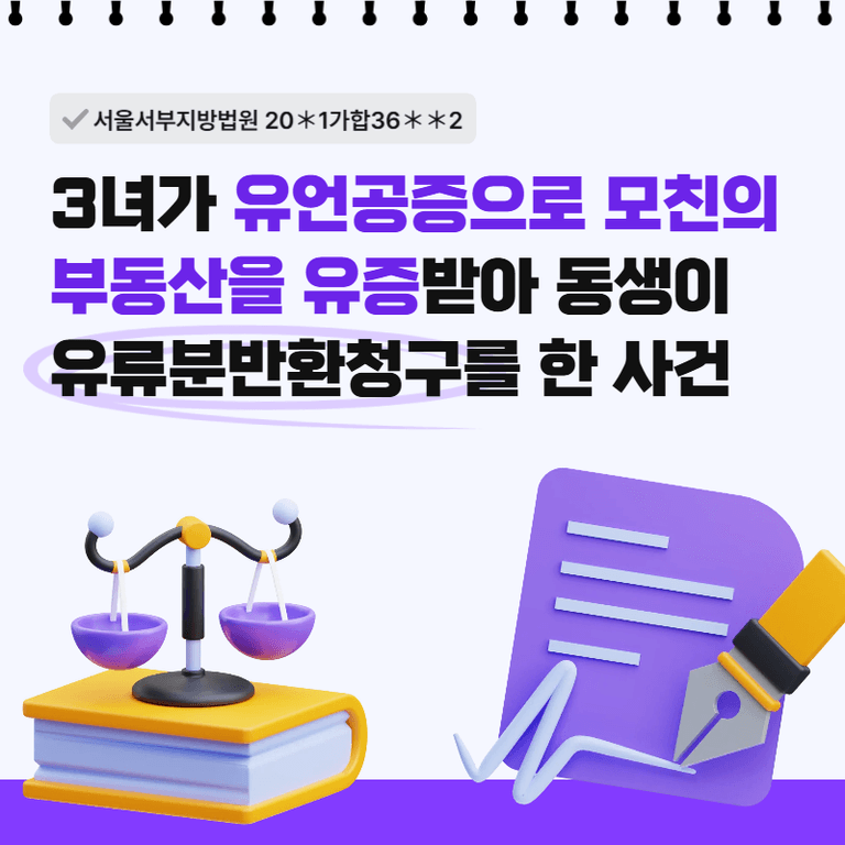 유언공증으로 모친의 부동산을 유증받은 동생을 상대로 유류분반환청구를 한 사건