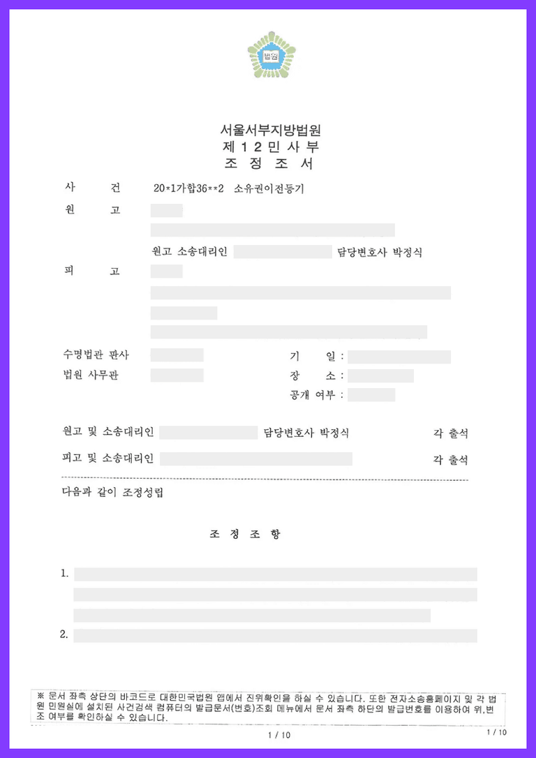 ③ 원고가 가액반환청구로 청구취지를 변경하자 재판부에서는 조정기일을 지정하여 조정을 실시하였고, 당사자들 사이에서 반환가액을 협의하여 가액으로 반환하는 내용으로 원만히 조정이 성립된 사건입니다.