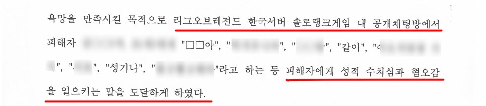 공무원 A씨는 리그오브레전드 한국서버 솔로랭크게임 내 공개채팅방에서, 여성 B양과 이야기를 하던 중 말다툼을 하게 되었습니다.