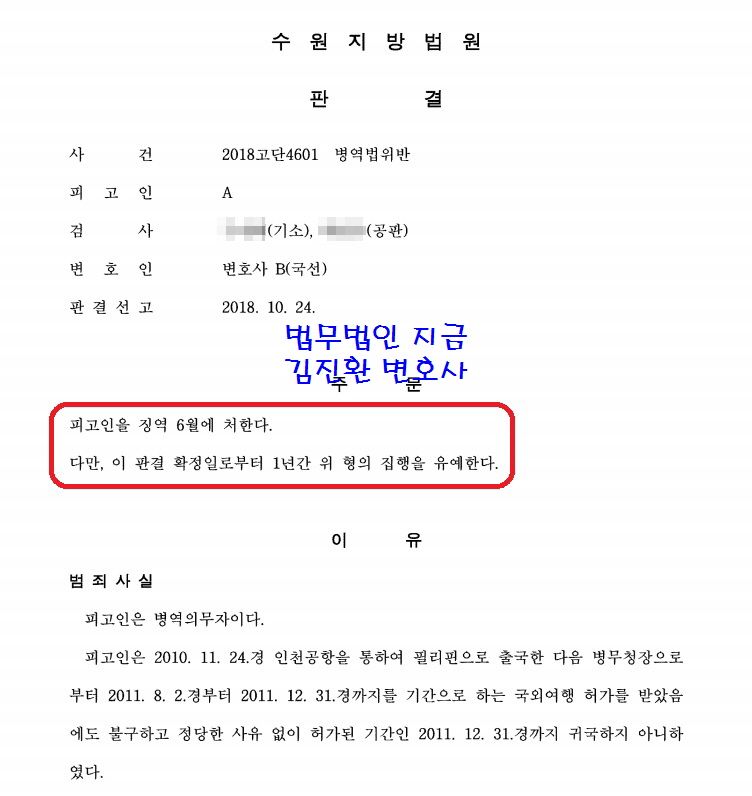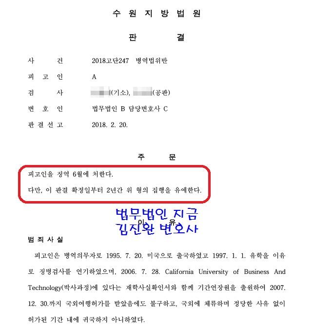 결과적으로 병역의무를 이행하게 되는 것이기 때문에 굳이 실형을 선고할 필요는 없고 초범이므로 집행유예 판결이 나오게 됩니다.