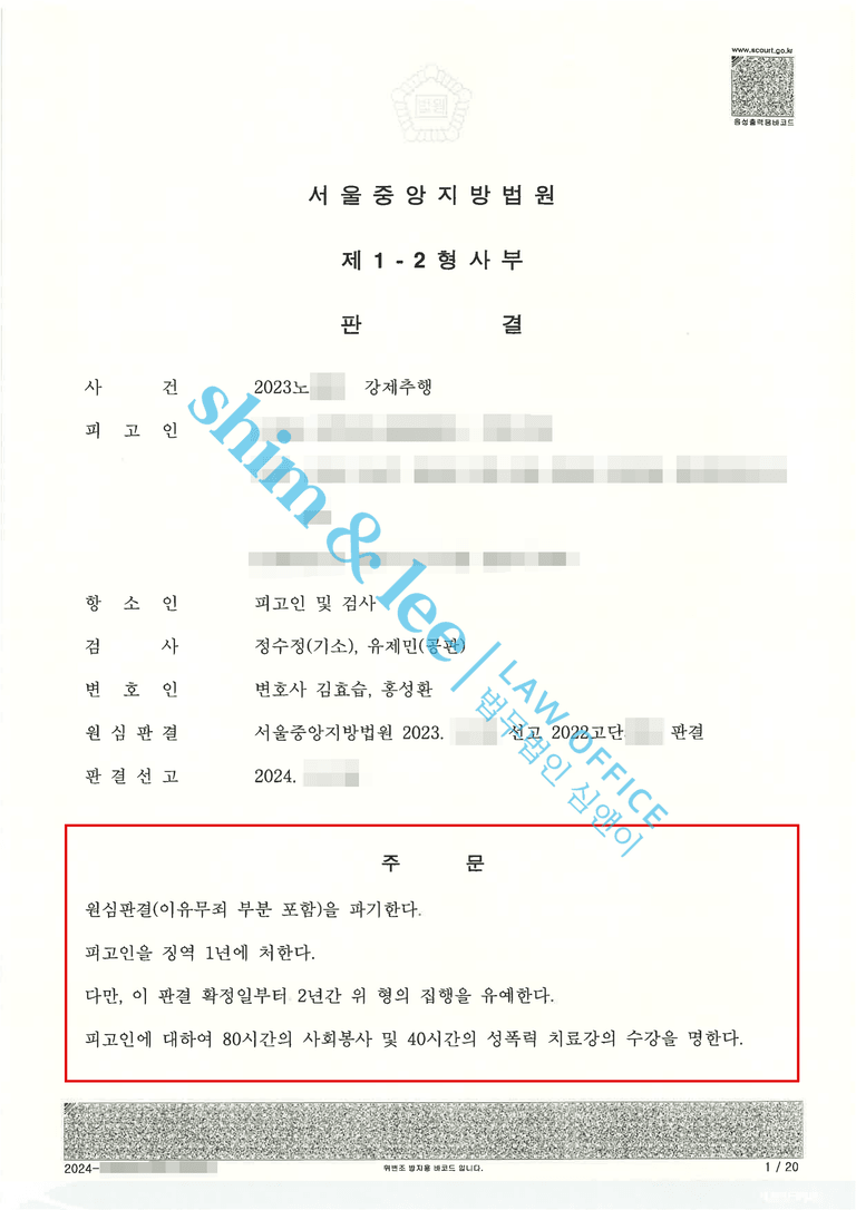 - 오늘의 사례처럼 1심에서는 무죄 판결을 받았더라도 2심에서 피해자 증인 출석과 양질의 변호사 의견서를 제출하여 유죄로 결과를 바꾸어내고, 또 형량도 크게 상승시키는 경우도 다양하게 존재합니다. 사건을 끝까지 최선을 다해 진행하려는 피해자분의 의지만 있다면 심앤이는 언제든 그 곁에서 전력을 다해 필요한 도움을 드리기 위해 노력하고 있습니다. 오늘 사례가 생각과는 다른 약한 처벌이나 무죄의 결과가 나오더라도 항소심까지 용기 내어 진행하시는 여러 피해자분들께 도움이 되었기를 바라겠습니다.