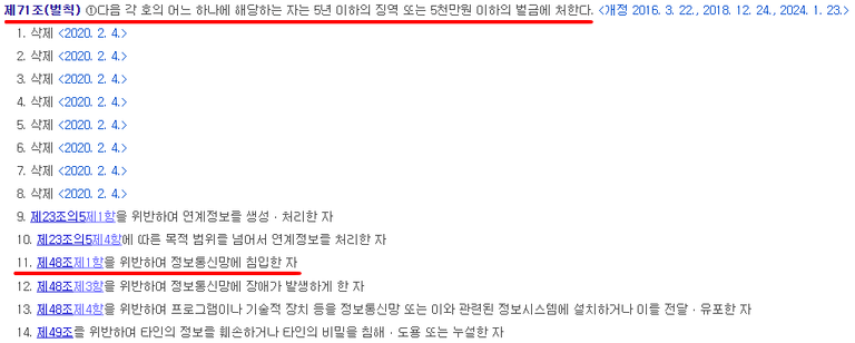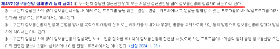 접속하는 경우 정보통신망법 제48조 제1항을 위반하는 것이 되어 형사처벌을 받게 됩니다.