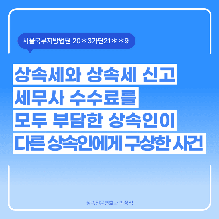 동생인 채무자는 피상속인의 상속세 신고나 납부에 대해서는 신경쓰지 않고 있었는데, 결국 언니인 채권자가 자신의 비용으로 세무사를 선임하여 상속세 신고를 6개월의 기간 내에 마치고 상속세를 납부하게 되었습니다.