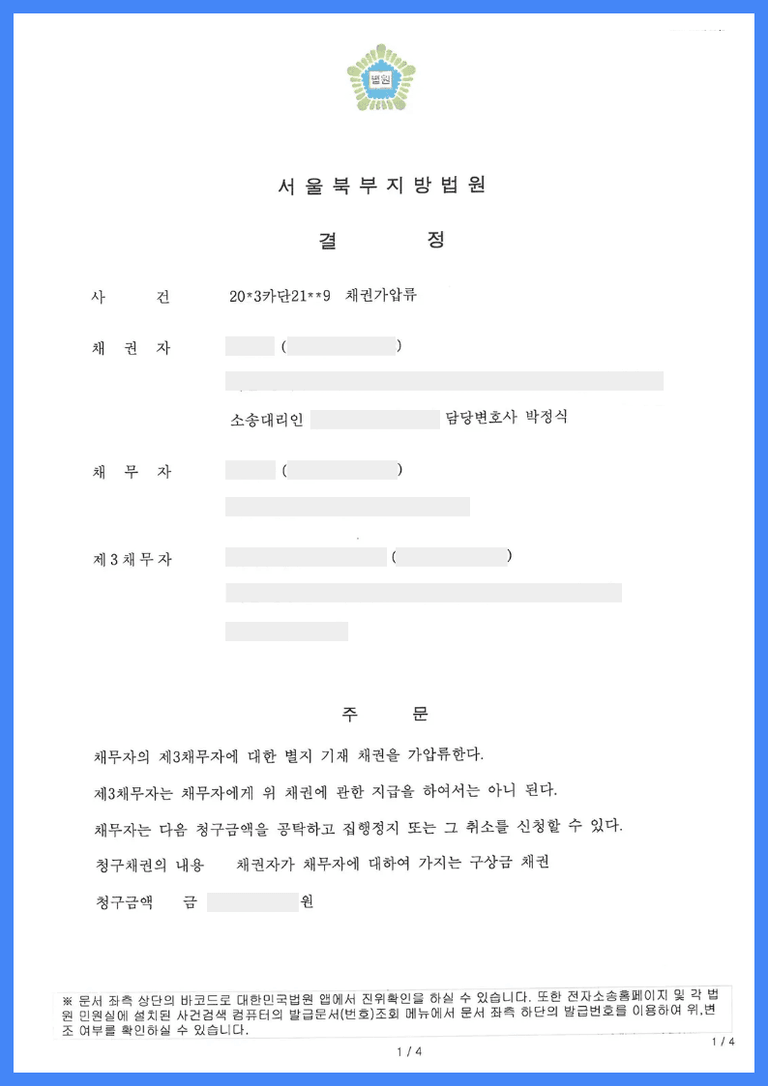 채권자는 자신의 출재로 채무자를 위하여 대신 납부해준 상속세를 구상하기 위하여, 우선 채무자의 명의로 되어있는 금융기관상품에 대한 채권가압류를 진행하게 되었습니다.