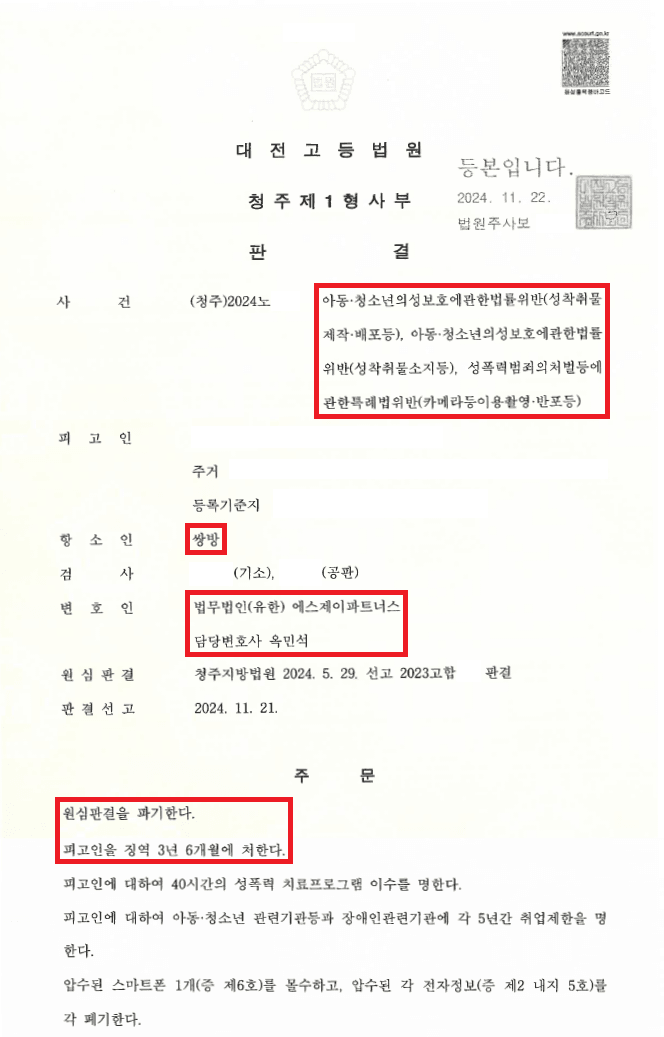A씨는 예상보다 훨씬 높은 형량에 곧바로 항소하였는데, 검사 역시 항소하였다는 소식을 듣고 큰 충격에 빠졌고, 그제야 사태의 심각성을 깨닫고 가족들을 통해 성착취물 사건을 다수 수행하며 성공적으로 해결하고 있는 저에게 도움을 요청하였습니다.