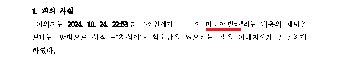 A씨는 2024. 10. 24. 22:53경 '리그오브레전드'에서 '칼바람나락'을 하던 중, 같은 편인 닉네임 '○○공주'가 자꾸 죽자 '트롤'이라고 생각하고 홧김에 "○○이 따먹어벌라"라는 채팅을 전송하였습니다.