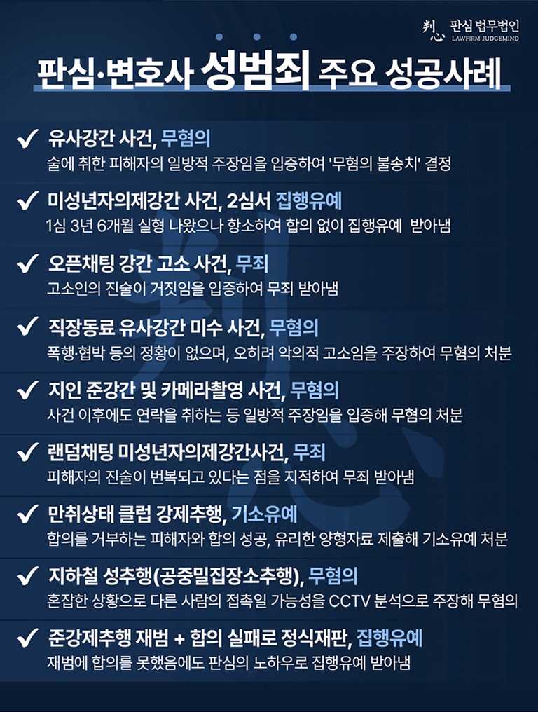 내려주었고 의뢰인은 무사히 평온했던 일상으로 돌아가며 성범죄에 대한 경각심을 가지고 살 것을 다짐하셨습니다.