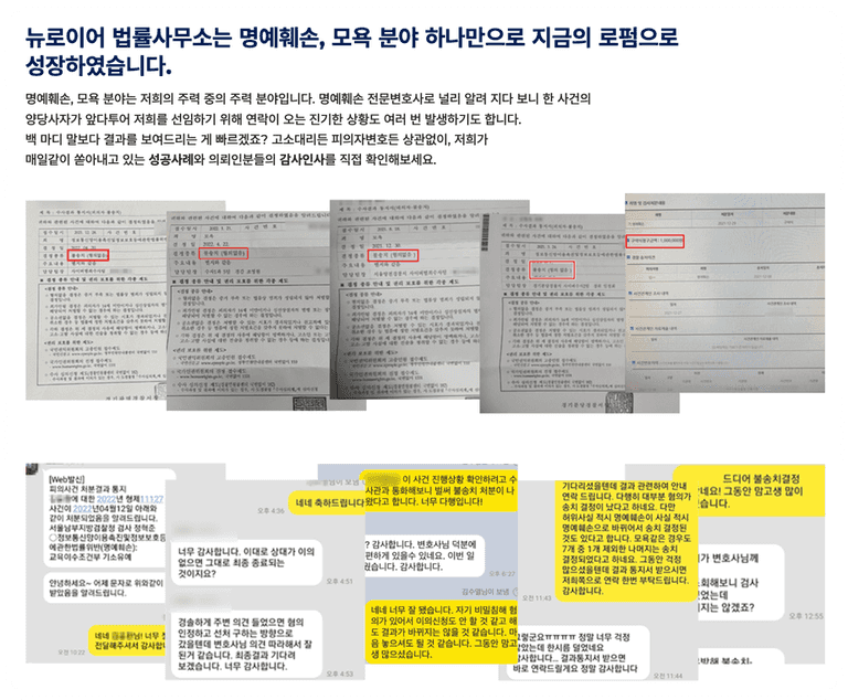 저희가 명예훼손, 모욕죄 사건을 전담해오며 여러분과 같이 피해를 입으신 분들을 도와드리고 있다 보니,