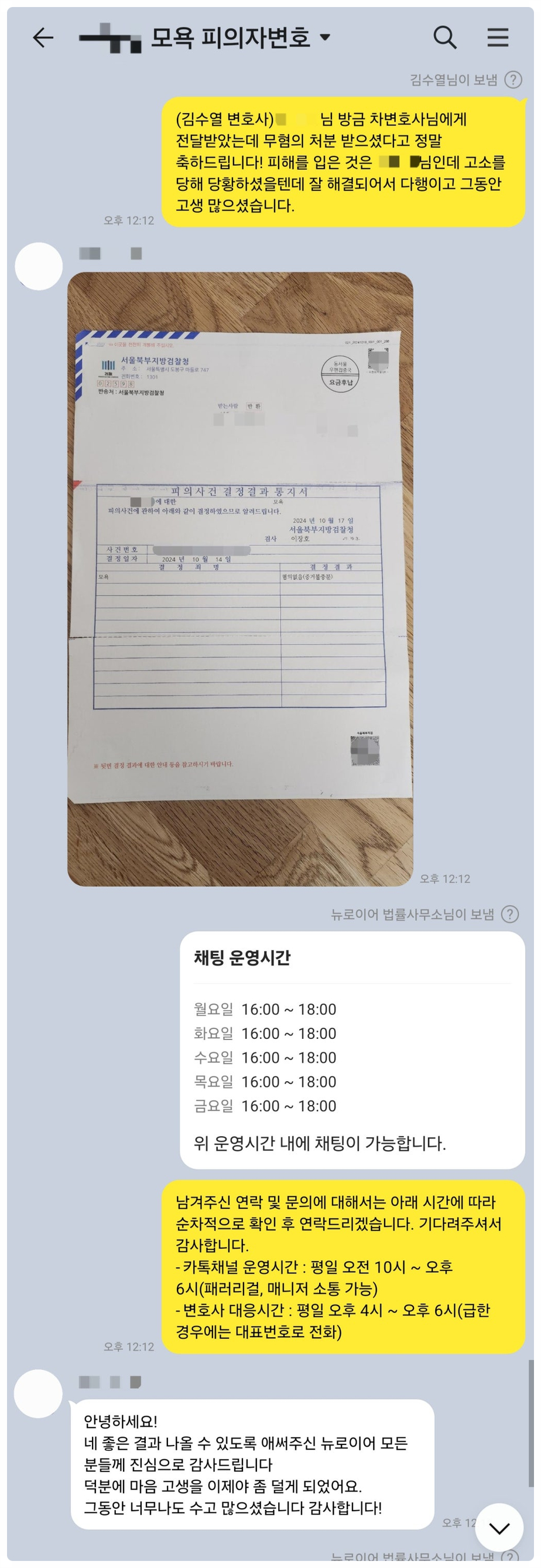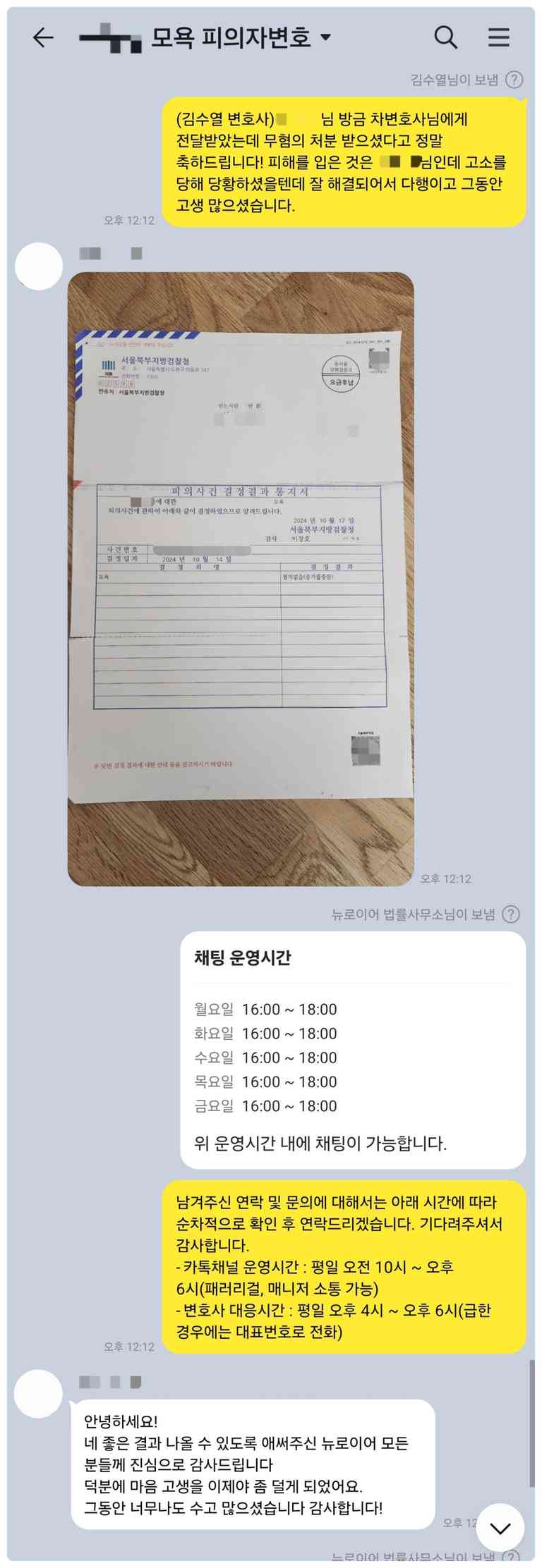 저희를 찾아주신 의뢰인분들의 감사 카톡 후기입니다. : )