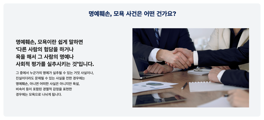 ![[명예훼손/모욕] 내리갈굼? 직장내 괴롭힘? 고소 가능합니다](/_next/image?url=https%3A%2F%2Fd2ai3ajp99ywjy.cloudfront.net%2Fassets%2Fimages%2Fpost%2Fguide_title.jpg&w=3840&q=75)