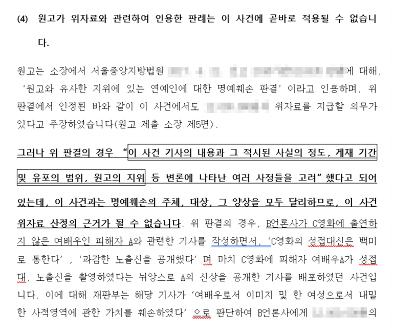 저희가 모욕죄보다 까다로운 명예훼손민사소송 위자료 감액 시 사용했던 일부 내용을 공유해 드리면 아래와 같습니다.