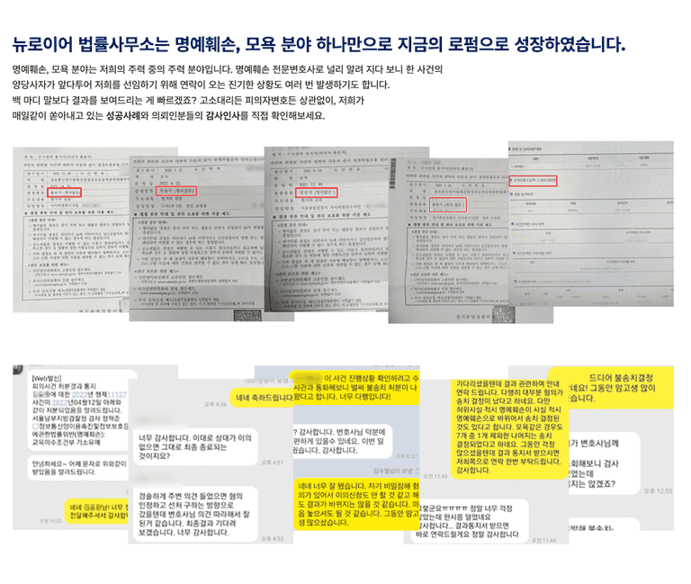 때문에 모욕죄, 명예훼손은 저희가 누구보다 해결할 자신이 있다 자신 있게 말씀드릴 수 있는데요.