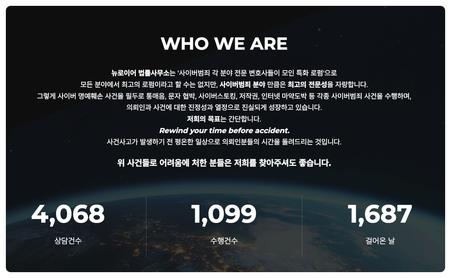 안녕하십니까? 사이버 범죄 로펌 뉴로이어입니다.