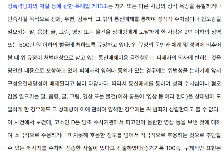 통매음 요건 중 '피해자의 양해나 동의', 실제로 부정된 케이스