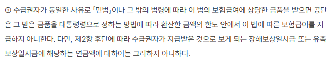 제80조입니다. 동법에 의하면 산재보험급여를 받으면 금액의 한도에서 민사 책임이 면제됩니다. 반대로 민사적으로 손해배상을 받으면 환산 금액의 한도에서 보험급여 지급도 면제됩니다. 서로 반대의 경우입니다. 취지는 같습니다. 이중 지급을 방지하기 위함입니다. 구체적인 규정은 아래와 같습니다.