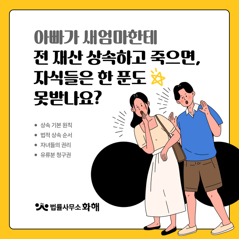 사실 우리가 TV 드라마에서 보는 것처럼 유산을 깔끔하고 공정하게 나누는 경우는 현실에서 찾아보기 어렵습니다. 더욱이 재혼 가정에서 일방적으로 누군가에게 재산을 몰아주는 일이 발생하면, 법적 분쟁과 더불어 가족 간의 갈등이 극에 달하게 되는데요. 오늘은 법률사무소 화해와 함께 우리 주변에서 흔히 발생할 수 있는 재혼 가정에서의 상속 문제와 남겨진 자녀들의 권리에 대해 자세히 알아보고자 합니다.