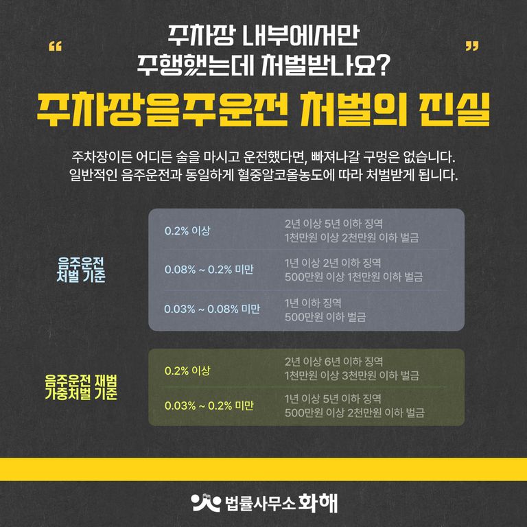 오늘은 법률사무소 화해에서 주차장음주운전에 대해 알려드릴게요.